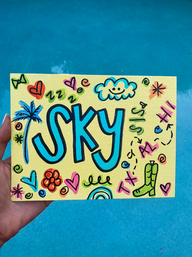 The Girlfriend Canvas is a perfect way to bring personalization to your gifts! Their name is surrounded by doodles unique to your friendship. Please choose from pre-made doodle options, or fill out our custom order form at the bottom of this page for larger orders with designs fully unique to your friendships!